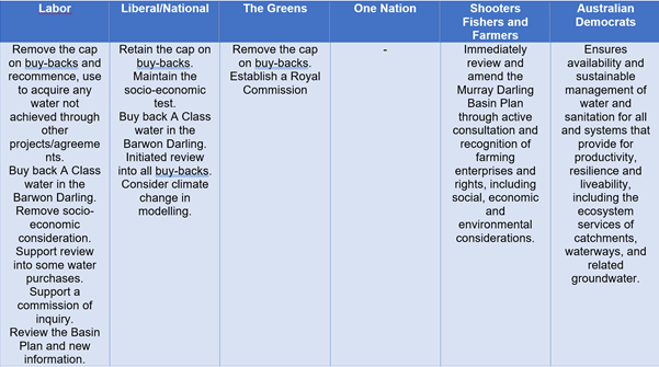 In addition to this, NSWIC asked for responses from each of the major parties on their positions to key initiatives and the response from the Liberal/National Party is provided here. No other party provided any responses, although the Labor Party did release its water reform policy here.