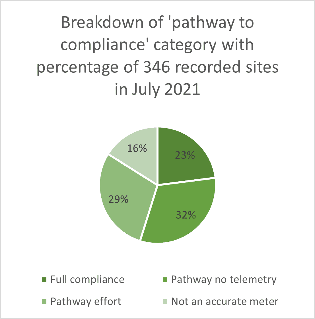 “NRAR determined the active status of 346 sites (Chart 2) and there are a 32% of these sites that are on a pathway to full compliance but have not connected telemetry, some of which cannot because the Government hasn’t approved compatible devices.[3]”