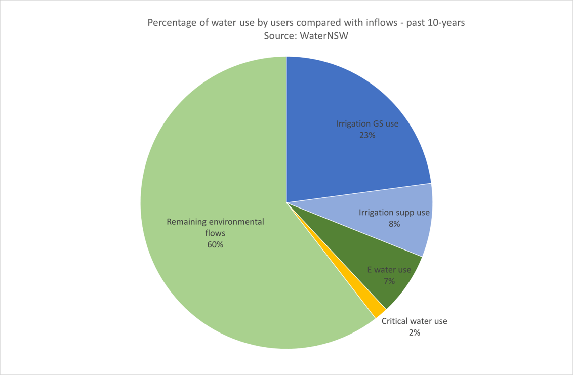 irrigators have had access to 23% of the known inflows into the system. This percentage excludes water allocated to the environment